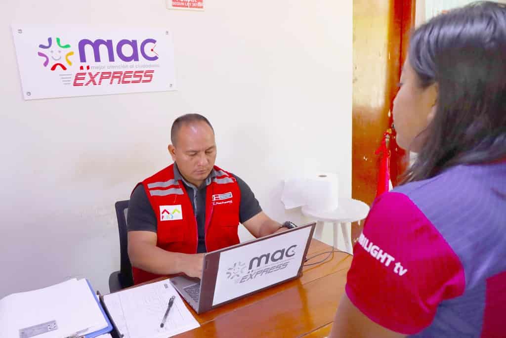 MAC Express es una solución tecnológica y presencial desarrollada por la Presidencia del Consejo de Ministros (PCM) del Perú, a través de la Secretaría de Gestión Pública. Esta plataforma permite realizar múltiples trámites digitalizados de distintas entidades del Estado en un solo lugar, con el acompañamiento de asesores capacitados. Está disponible en municipalidades, Tambos (centros de servicios en zonas rurales) y Plataformas Itinerantes de Acción Social (PIAS), facilitando el acceso de ciudadanos en diversas regiones del país — desde grandes urbes hasta comunidades rurales de difícil acceso.?